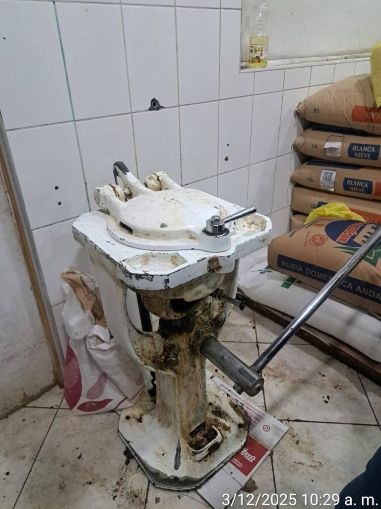 • Máquinas procesadoras cubiertas de suciedad extrema, óxido y restos acumulados, un riesgo directo de contaminación.