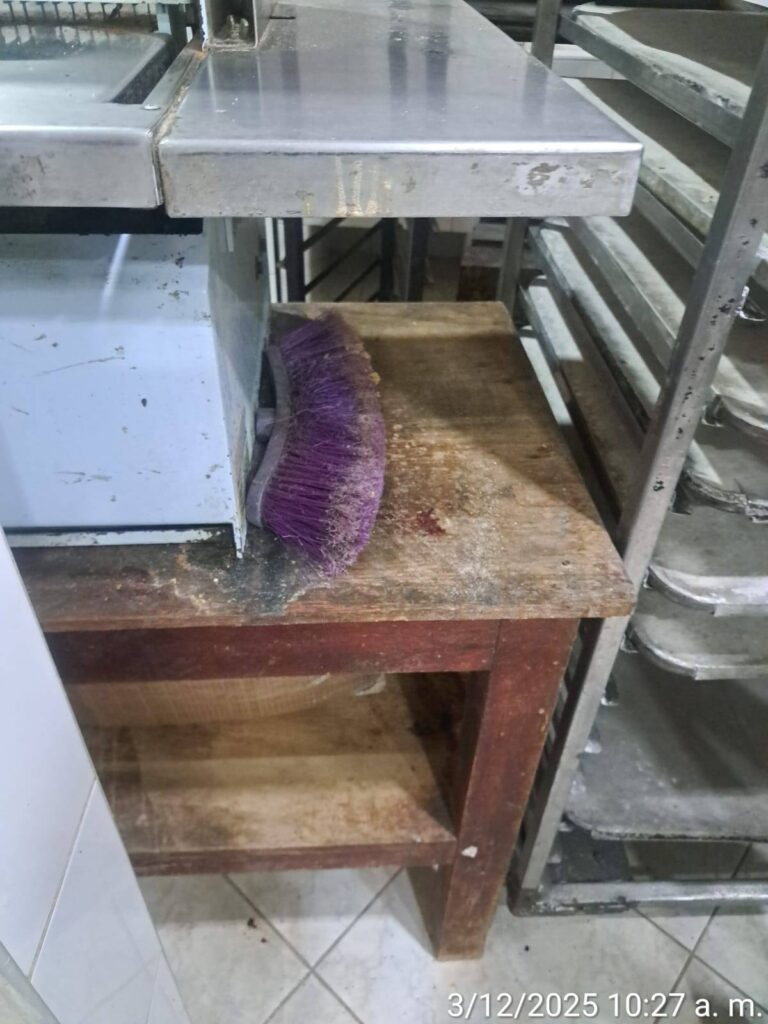 • Escobas, ropa y objetos ajenos al rubro sobre superficies donde se manipulaban alimentos, una negligencia que evidencia total despreocupación por la salud de los consumidores.