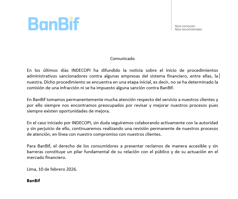Frente al inicio de este proceso, BanBif ha emitido un comunicado señalando que el procedimiento administrativo se encuentra en una etapa preliminar. La entidad bancaria enfatizó que, hasta el momento, no se ha determinado la existencia de infracción alguna ni se ha impuesto sanción en su contra. BanBif reafirmó su compromiso con la revisión constante de sus procesos de atención al cliente y su disposición a colaborar con la autoridad durante el desarrollo de la investigación, destacando la importancia de garantizar el derecho de los consumidores a presentar reclamos sin restricciones. No obstante, al cierre de esta edición, Banco Ripley y Santander Consumer Bank no han emitido pronunciamientos públicos sobre el particular.